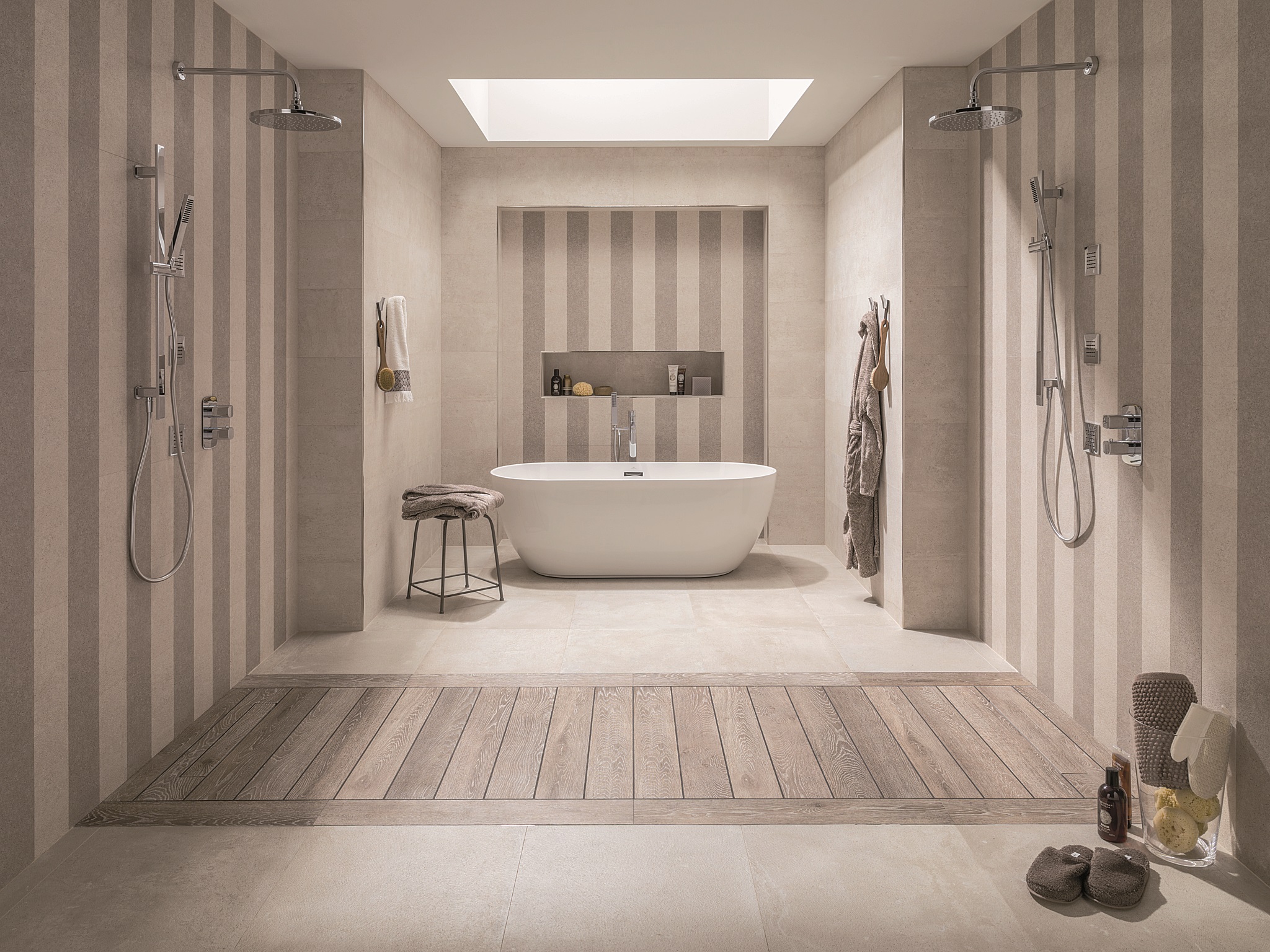 Dlaždice Dover Arena je matným strukturovaným obkladem o rozměrech 31,6 x 90 cm.