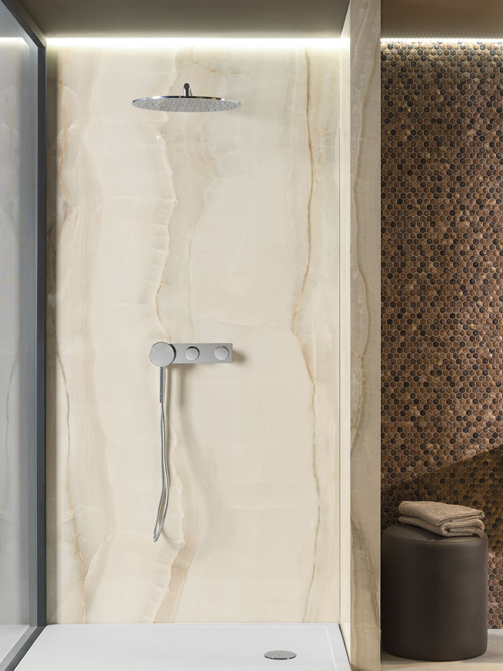 Velkoplošné materiály v tloušťce 9 mm se dají používat na zdi, fasády a podlahu soukromých i více namáhaných, veřejných prostor. Navíc větší tloušťka umožňuje využití i pro kuchyňské, barové, recepční a další desky.
