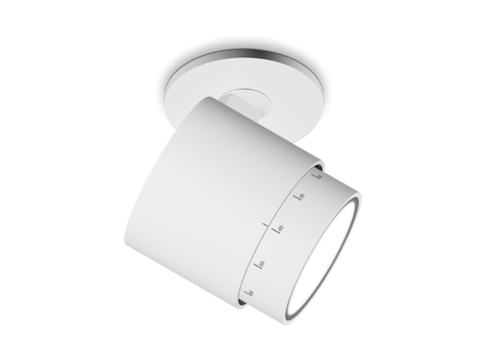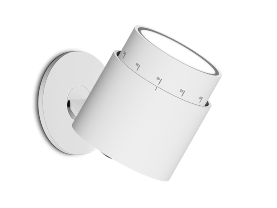 Otočné nástěnné a stropní svítidlo. Využívá LED technologie, jejíž světlo se dá obměňovat pomocí barevných filtrů a optických skel.