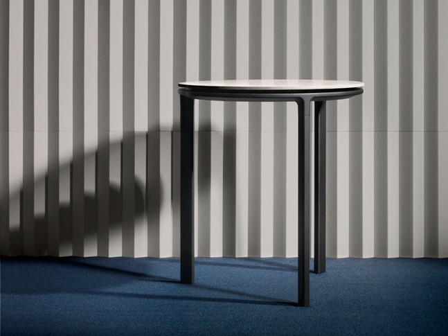 Odkládací stolek Vipp421 vyniká minimalistickým a nadčasovým designem. Rám je vyroben z práškově lakované oceli v černé barvě, podnoží ze syntetického materiálu, v kombinaci s jemnou porcelánovou kameninovou deskou. Stolek lze využít například ke křesílku nebo pohovce či jako noční stolek k posteli.