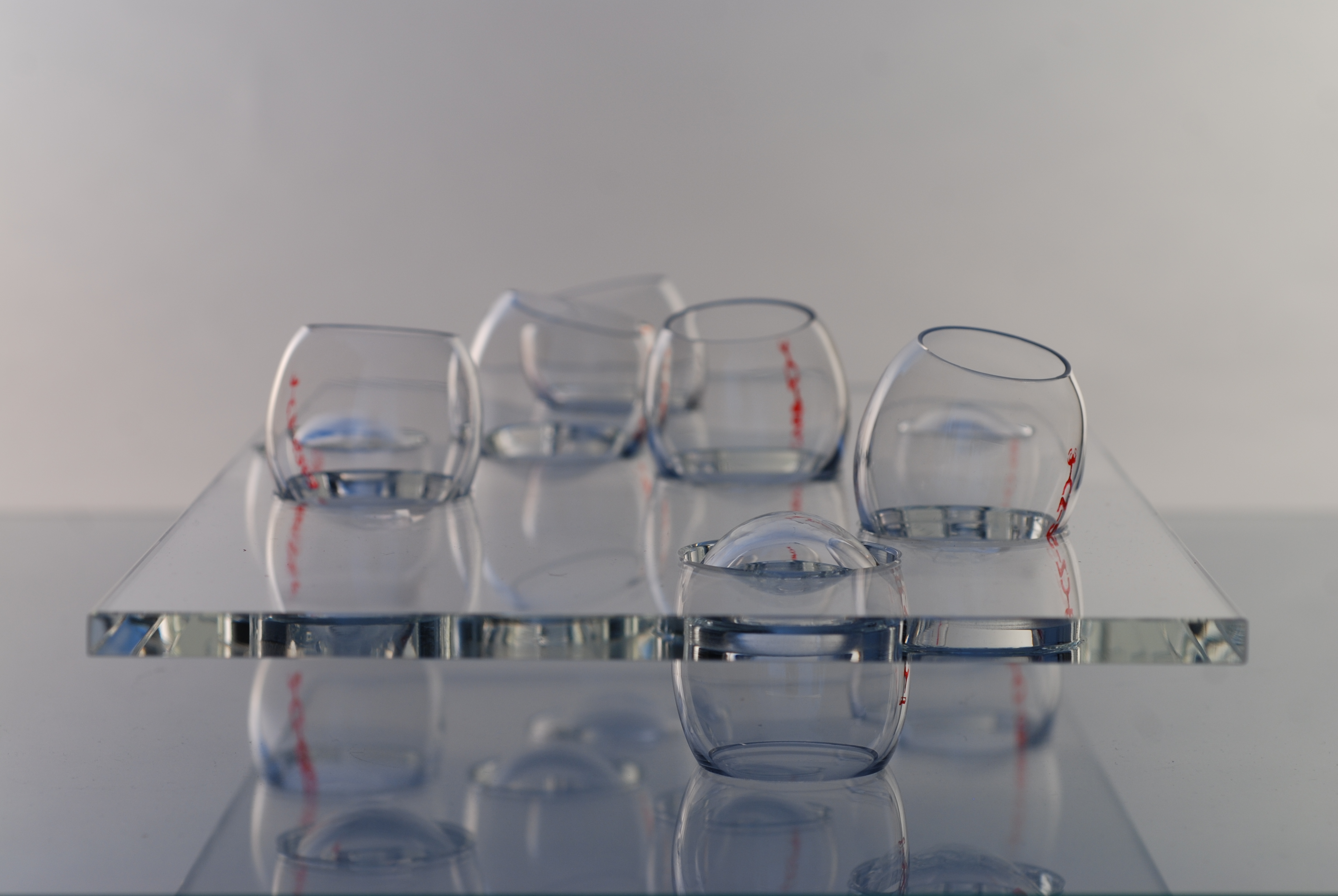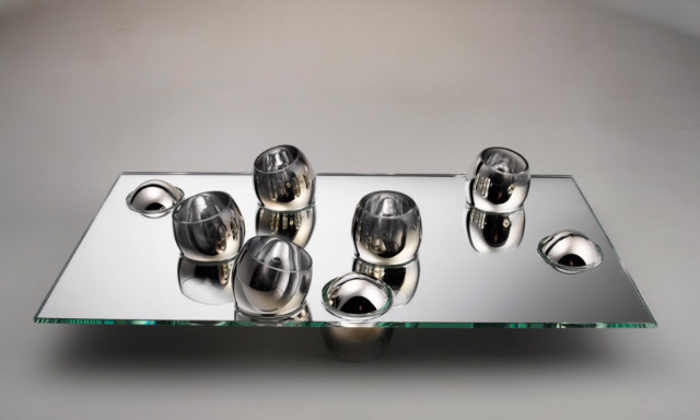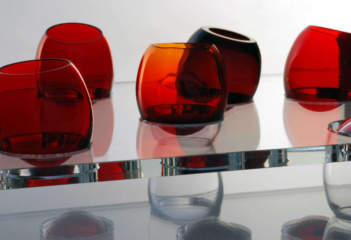"Omne vivum ex ovo – vše živé je z vejce" Sada OVO vychází ze skutečných rozměrů vejce. Ve starých kulturách vejce symbolizuje chaos původní svět, ale také životní sílu. Sada má více barevných variant. Technologie: foukané, broušené a leštěné sklo