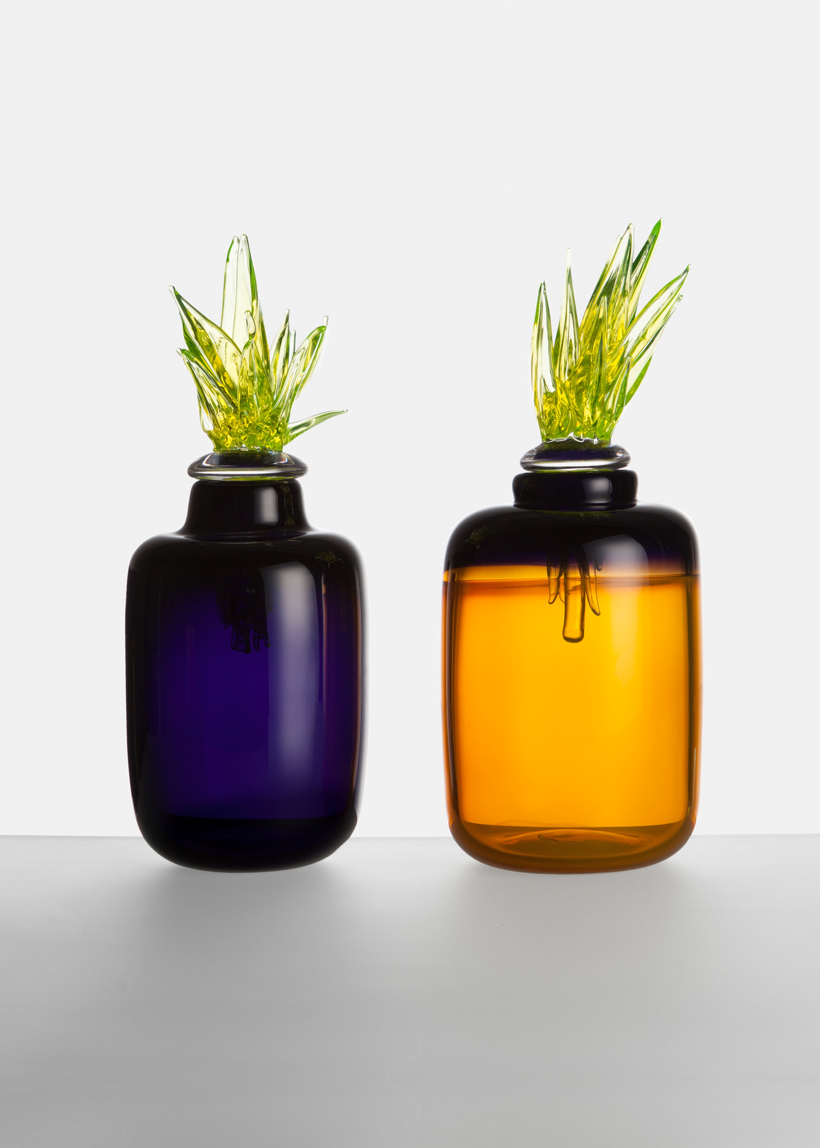 Pineapples, 2014 je složen ze dvou kusů skleněných objektů. První ve velikosti 14 x 8 cm , druhý v 9 x 8 cm. Zakoupit je můžete v Drdova Gallery.