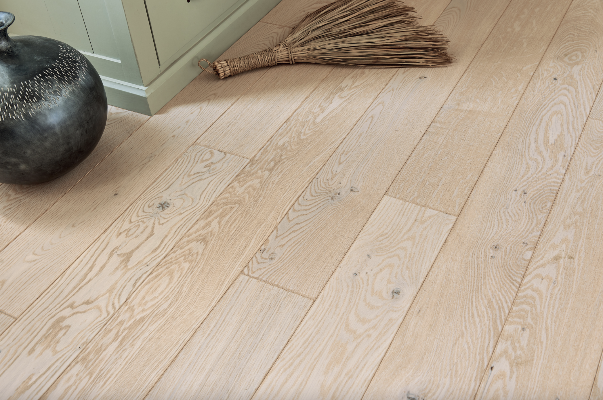 Tato jemná podlaha z bílého francouzského dubu se chlubí svými přirozenými nedokonalostmi a při navrhování zbytku vašeho interiéru vám poskytne carte blanche. Nepřímé osvětlení vytváří ostře trojrozměrnou texturu a krásně ladí s perleťově šedou, cerulskou modrou a jednoduchými přírodními materiály, jako je prádlo a kůže.