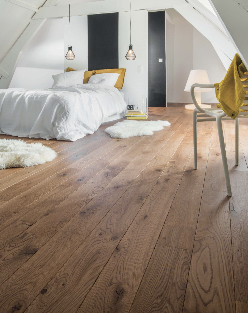 Pokud milujete kouzlo starých dřevěných podlah, které přežívají v průběhu času, tato je přesně pro vás! Široká prkna jsou ve skutečnosti ohraničena 2 zkosenými hranami, jako by byla vyřezána ručně.
