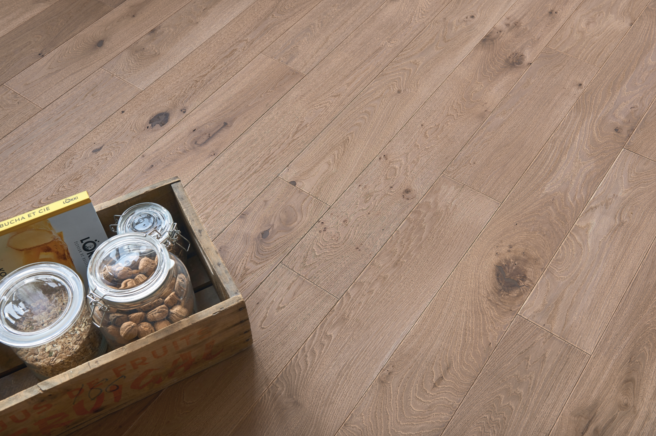 Panaget rozšiřuje svoji nabídku dřevěných podlah o novou povrchovou úpravu „Café Crème". Díky jemnému, mléčně lesklému a extra širokému prknu má tato dřevěná podlaha moderní kouzlo.