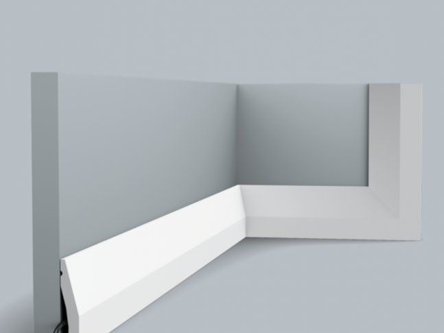 Tato jednoduchá podlahová lišta je mírně zkosená a hodí se do libovolného interiéru. Multifunkční profil vytváří plynulý přechod mezi stěnou a dveřmi, okny a dokonce i stropem.