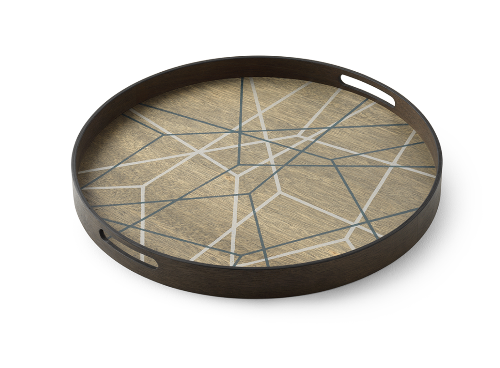 Troy je podnos z tmavého dřeva s vysokým okrajem. Horní list Troy je k dispozici ve dvou barvách mořidla: „Šedá“ s grafickým vzorem v modré a bílé barvě nebo „Blush“, na kterou je aplikován modro-červený vzor.
