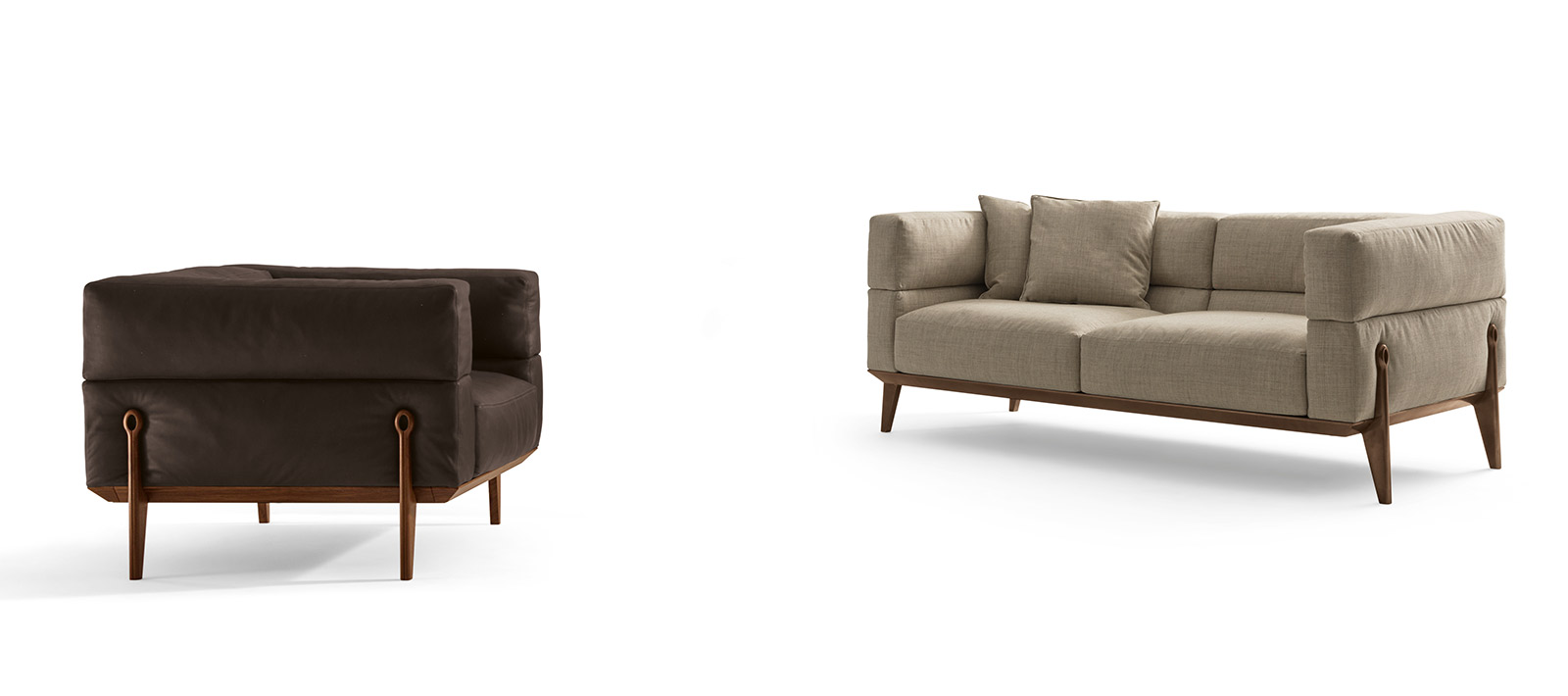 Křeslo a pohovky se základním rámem z profilované oceli, které jsou pokryty masivním dřevem ořechu Canaletto (fin.11). Zadní část a područky jsou vyrobeny z topolové překližky. Součástí jsou tři polštáře z husího peří. Nohy a bošní konstrukce jsou k dispozici v provedení z masivního ořechového dřeva Canaletto (fin.11), nebo tekutého kovu v bronzové nebo titanové verzi.
