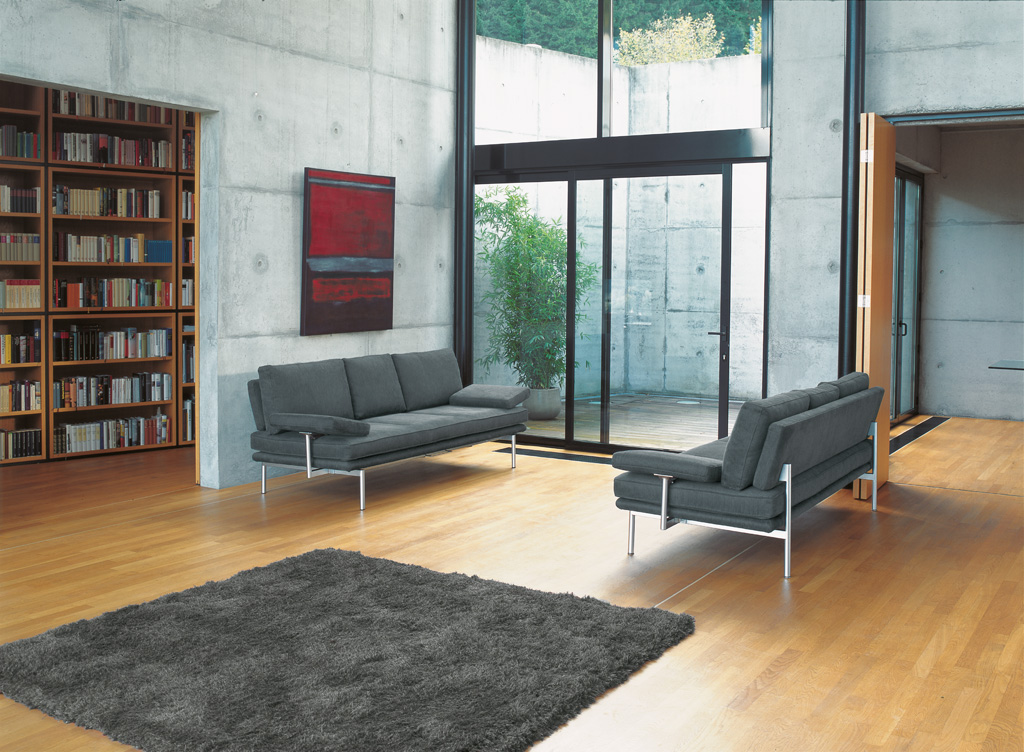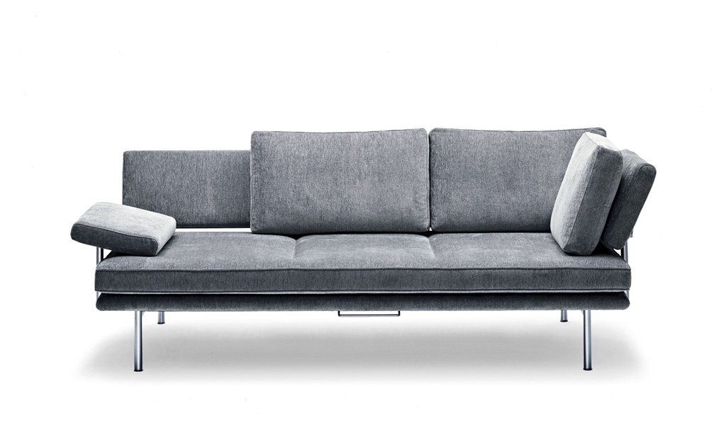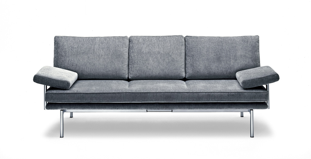 Pohodlná rozkládací pohovka je tvořena jednoduše sklopnými opěrkami a polštáři, místěnými naproti nim. Roztažením pohovky vytvoříte pohodlnou postel pro vaše návštěvníky. Úprava rámu je buď saténově nebo vysoce leštěná chromovaná.
