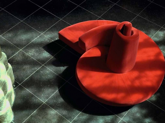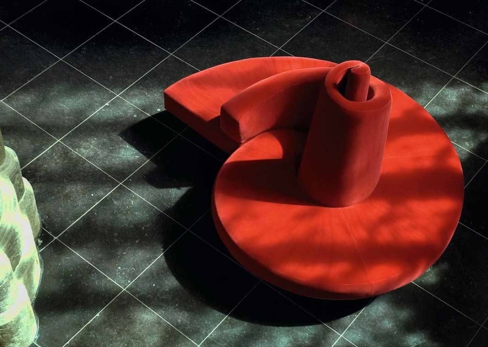 Pohovka pro střed místnosti, inspirována Tatlinskou věží, znak konstruktivismu. Moderní totem, ideální i pro veřejná prostranství. Umožňuje nové možnosti sezení a nabízí prostor pro více lidí.