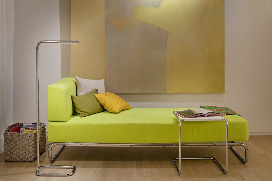 Čalouněné prvky mohou být umístěny na standardním základním ocelovém korpusu buď jako loketní opěrky nebo jako zadní opěradlo. Tato nápaditá idea otevírá široký rozsah užití a velký výběr modulárních verzí.