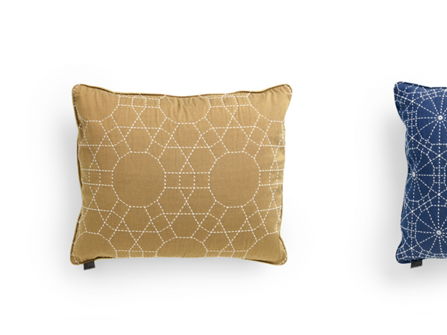 Japonská vyšívací technika „Sashiko“ byla původně používána k vyšívání tkanin. To inspirovalo Edwarda van Vlieta k navrhování řady exkluzivních vzorovaných látek ze kterých jsou tyto polštáře. Použil jemné geometrické motivy na bázi tří barev: Hvězda (na stříbrném pozadí), Deštník (tmavě modrá) a Dome (šafrán).