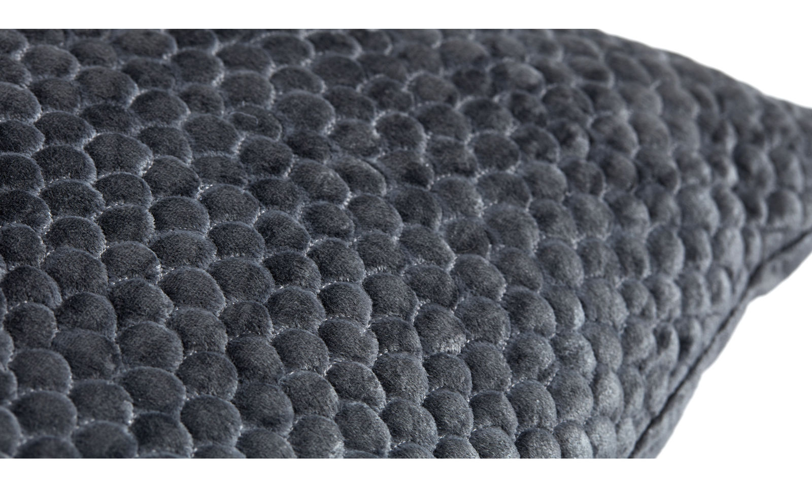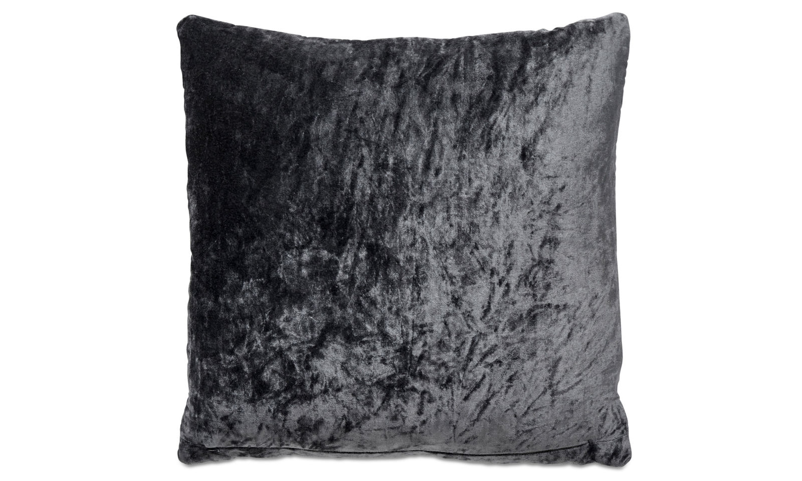 Polštář uhlově šedé barvy ze 100% bavlněného sametu.