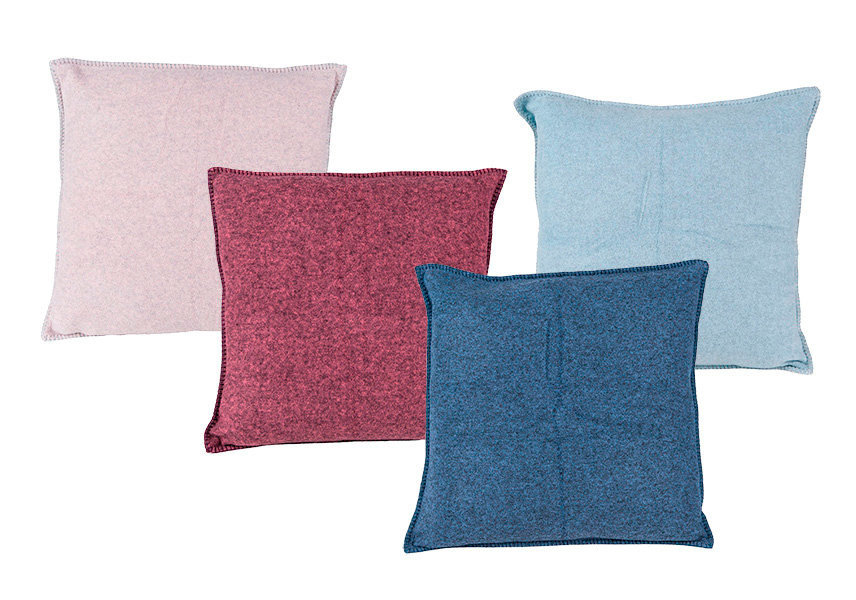 Polštář Soft Wool je praktickým doplňkem. Je vyroben z viskózy v kombinaci s vlnou dostupný v 11 barevných provedeních. Polštář je vždy melírovaný tmavě nebo světle šedou barvou. Na koncích je olemován širokým stehem.