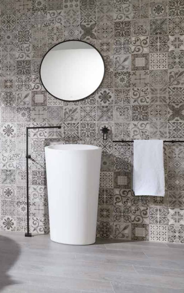 Dlažba OXFORD SILVER v kombinaci s obklady ANTIQUE GREY vytvoří unikátní design, který se hodí nejen do Vaší koupelny. Dodavatel Porcelanosa, Španělsko. OXFORD SILVER - 22x90x1,1cm/14,3x90x1,1cm, ANTIQUE GREY - 31,6x90x0,9cm.