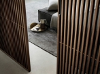 Oboustranný posuvný panel, který kombinuje funkčnost s originální a výraznou estetickou hodnotou. Může být kombinován se skleněnými tabulemi Rimadesio a hliníkovými konstrukčními prvky, které jsou také k dispozici v dubovém provedení.