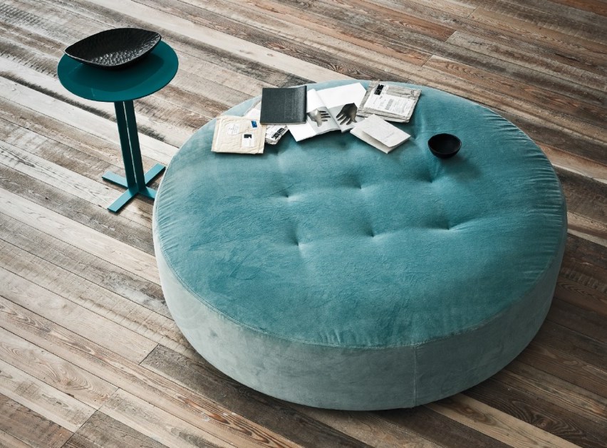 Kulatý pouf je k dispozici v hladkých nebo prošívaných verzích. Biscotto je neformální kus s nezávislou osobností, ideální pro kombinaci s dalšími podobnými prvky.