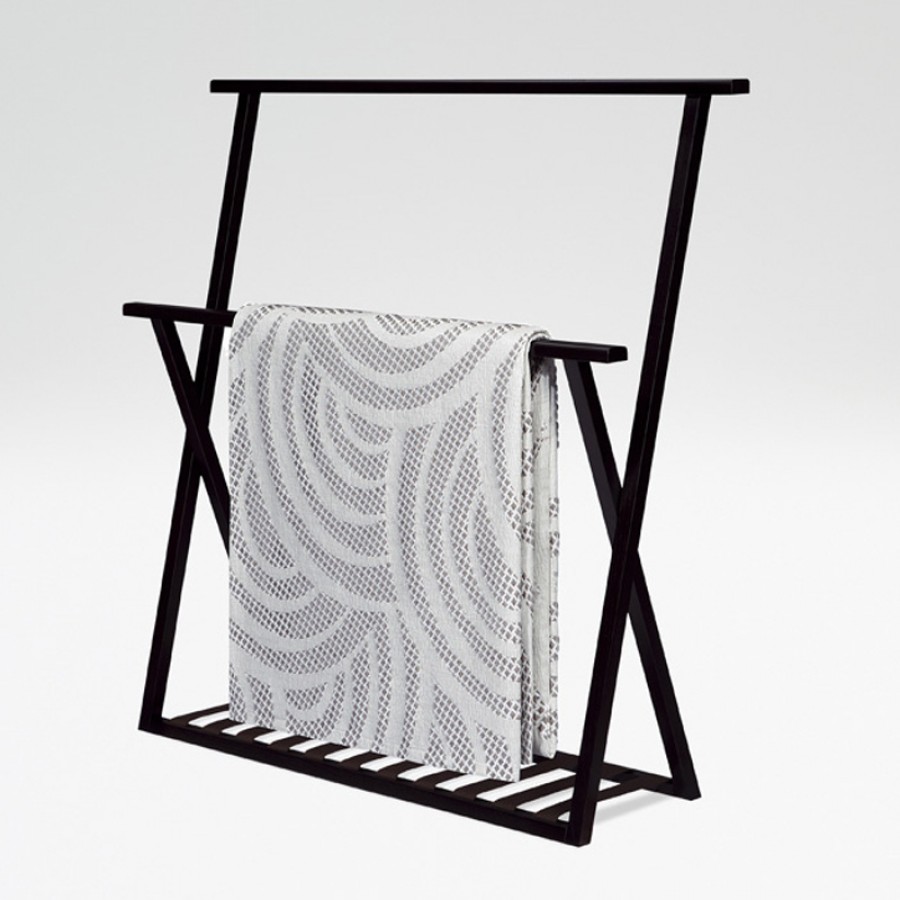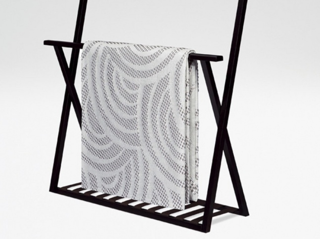 Převislý přehoz přes postel s vlnitými pruhy a geometrickými oblouky. Přehoz je navržen ve dvou velikostech podle rozměrů postelí z nabídky Armani/Casa.