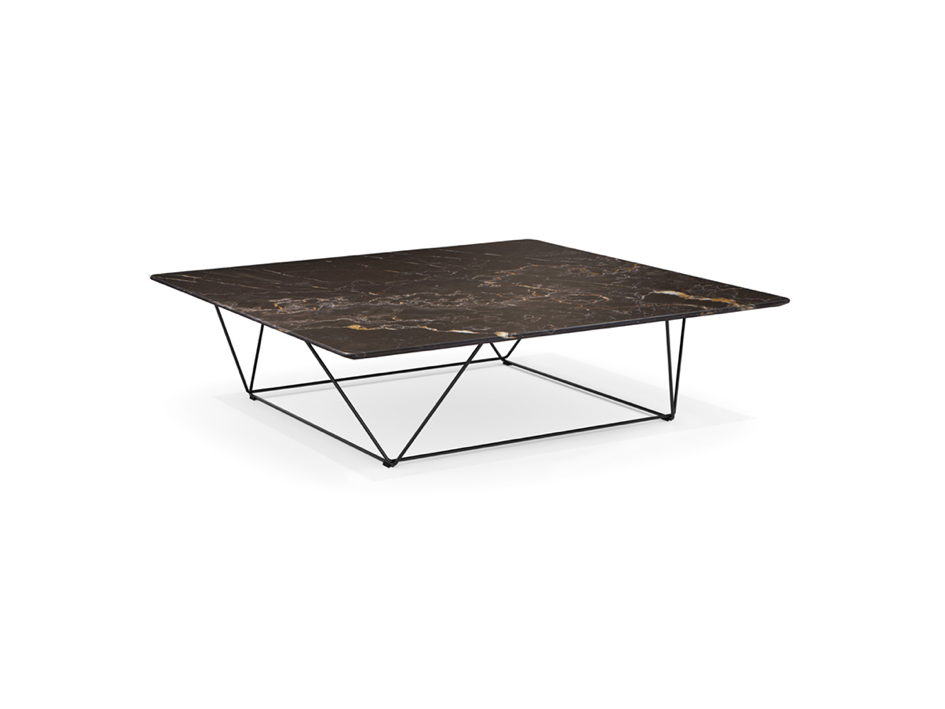 Mramor ukazuje sílu a stabilitu jako téměř žádný jiný materiál. Velké desky z přírodního kamene vypadají, že plavou nad jemným rámem. Organické žilkování je v jemném kontrastu ke geometricky tvarované podnoži. Skutečný luxus je varianta z kristalinu, bílého onyxu. Každá deska stolu je jedinečná.