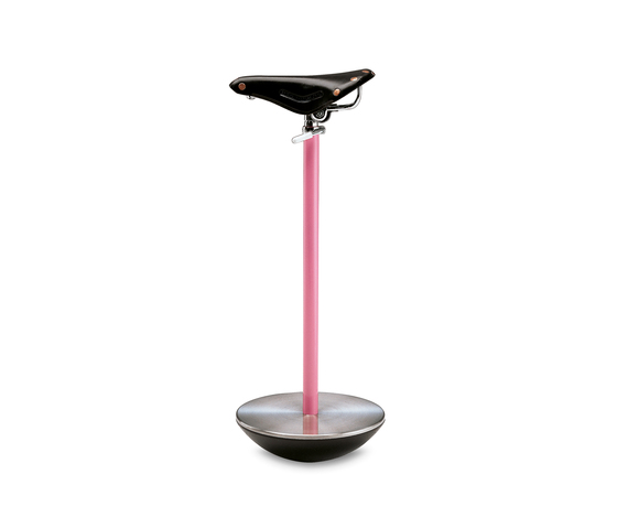 Stolička vyrobená ze sedáku kola na které si musí každý uživatel najít svojí správnou rovnováhu.