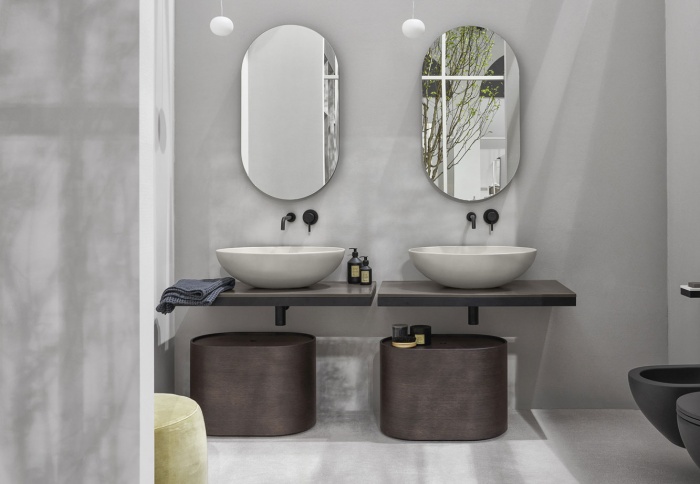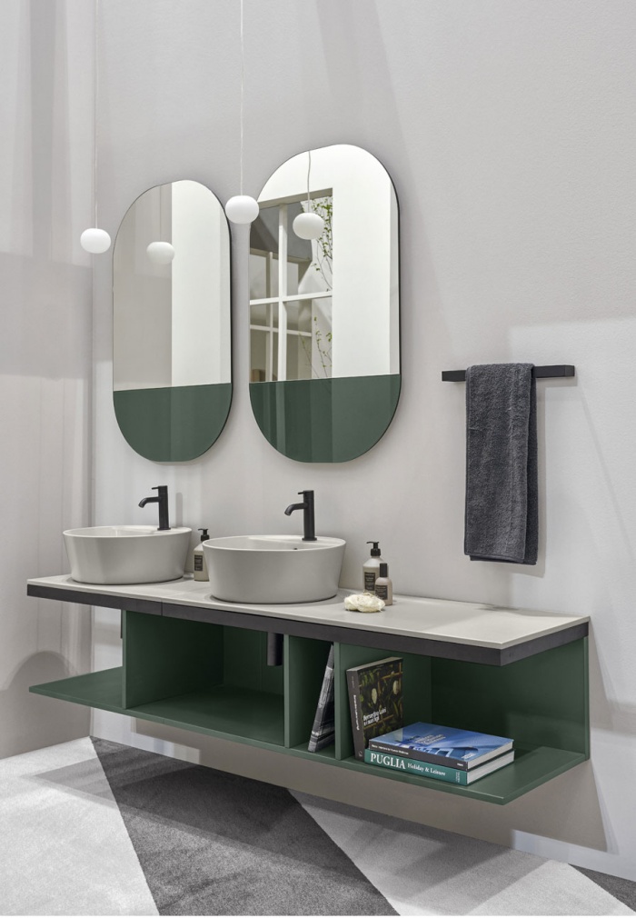 Multiplo chytrým řešením, jak vybavit koupelnu dynamickým a všestranným způsobem. Několik prvků dává život mnoha kombinacím: od jednoduchého keramického krytu, na který lze umístit různé kolekce misek až po nejúplnější řešení s odkládacím prostorem nebo otevřenou skříní.