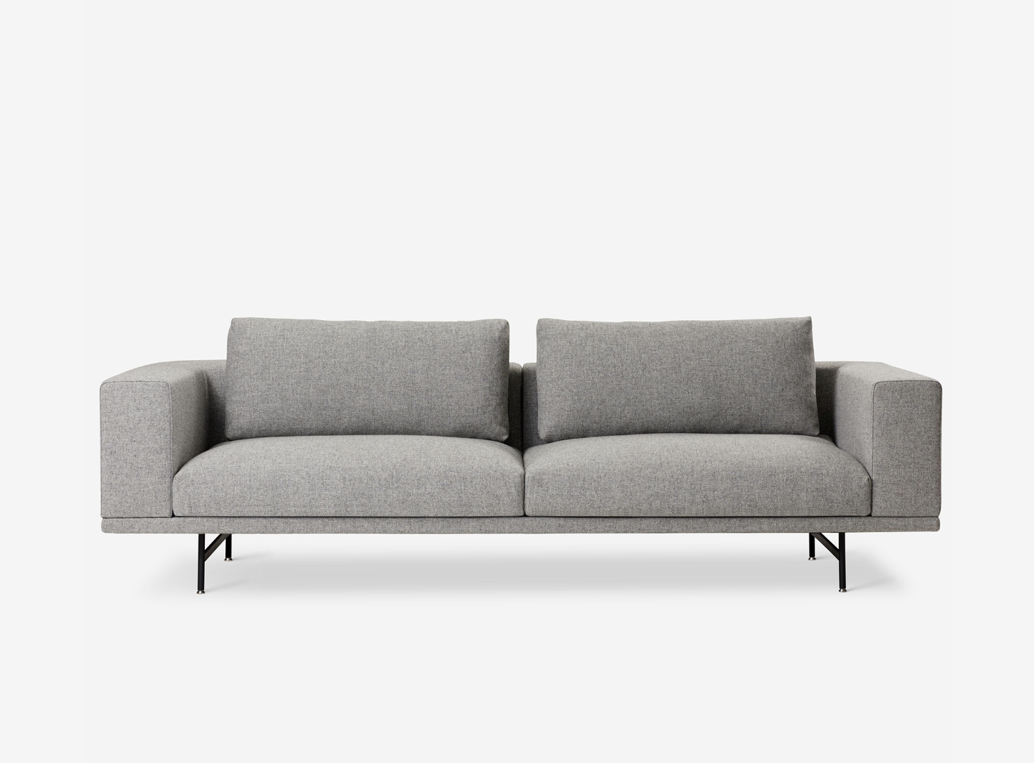 Pohovka Loft má široký, hranatý tvar s dřevěnou a ocelovou konstrukcí nesenou štíhlým rámem z práškové oceli. Včetně jednoho polštáře na jednotku.