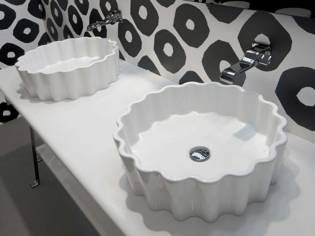 Doppio Zero je umyvadlo připomínající umyvadla minulého století předesignované ve zcela nových rozměrech. Pultová keramická mísa, bez kohoutku a bez přepadu.