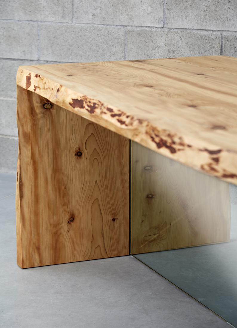 Pro klienta jsme realizovali zakázkový jídelní stůl z libanonského cedru a skla. Masivní dřevěná deska s nepravidelnou hranou je složena ze dvou fošen o tloušťce 6 cm. Odolné sklo silné 20 mm má funkci středové neviditelné podnože. Tento jídelní stůl je zcela výjimečný hlavně díky brutální kombinaci materiálů.