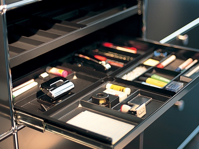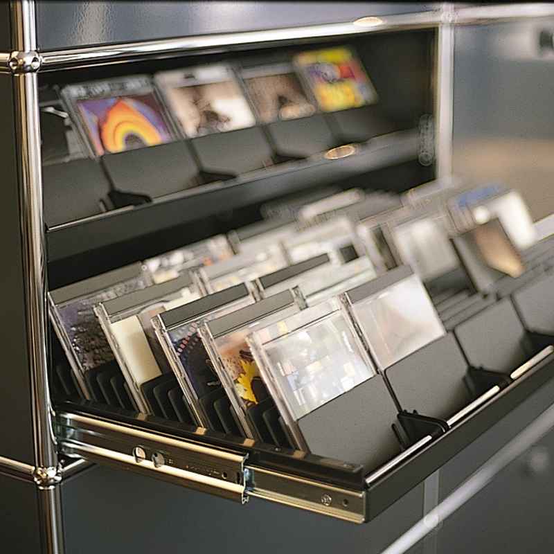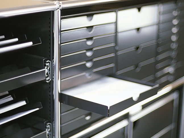 Cena Designpropaganda TagyPříslušenství k regálu Haller, ržák CD/DVD do výsuvu, plech 750x350mm, pořadač do výsuvu, box se šuplíky.