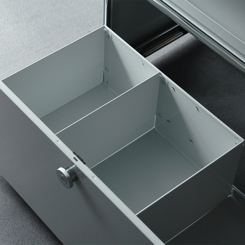 Příslušenství k regálu Haller, ržák CD/DVD do výsuvu, plech 750x350mm, pořadač do výsuvu, box se šuplíky.