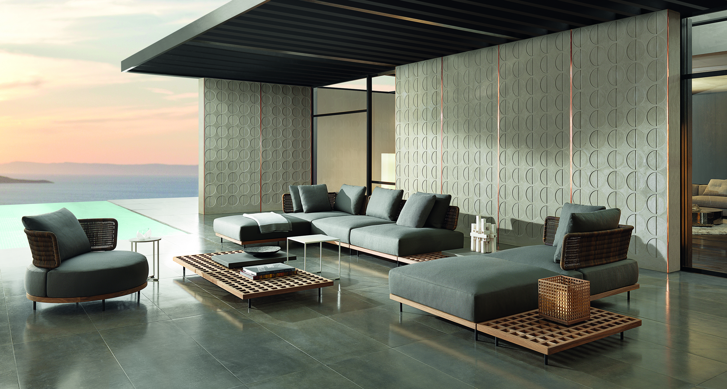Modulární systém vekovního mobiliáře navržený brazilským architektem Mariem Koganem. Návrh je inspirován teakovými tabulemi používanými v jachtařství pro snadnější odtok vody.