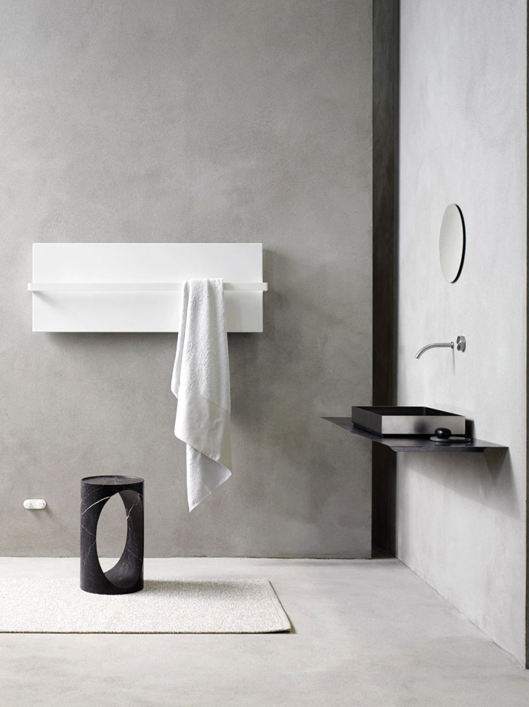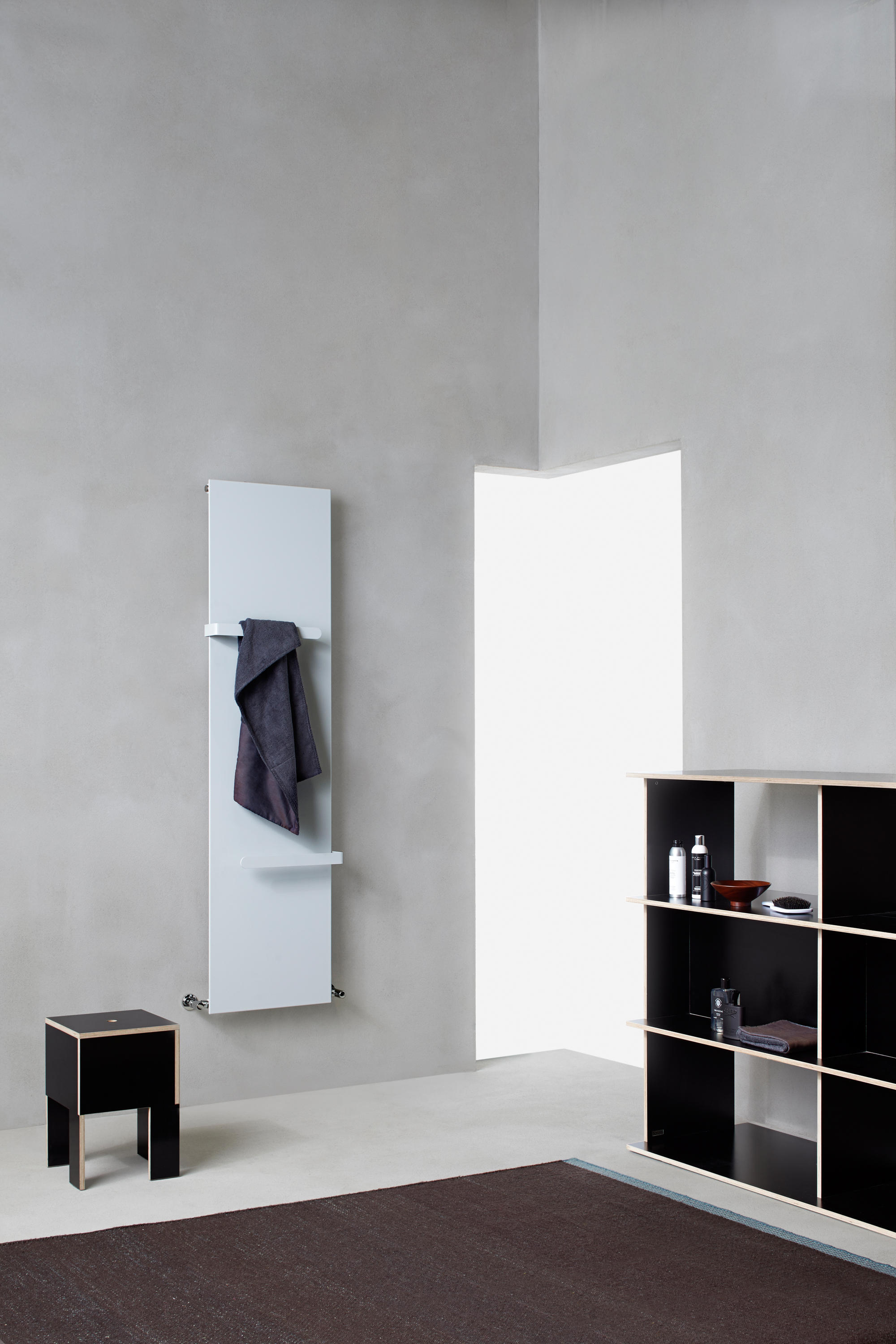 Radiátor navržený do koupelen. S místem pro sušení ručníku. Dostupný v několika tvarových a barevných variantách.