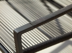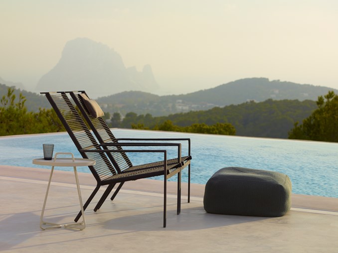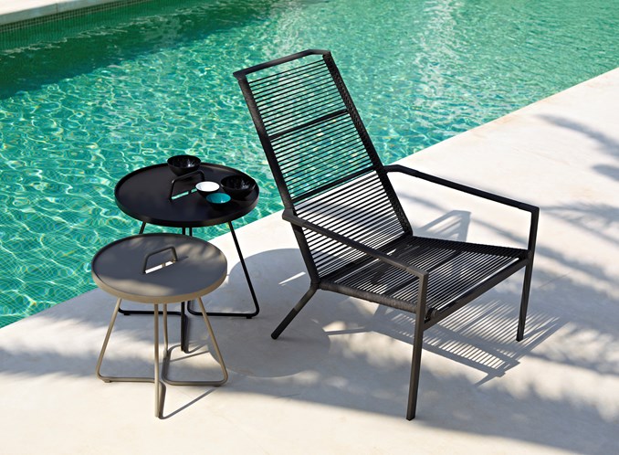Venkovní křeslo s vysokými zády z kolekce Rope. Pohodlné sezení zajišťuje proplétaný sedák i opěrka.