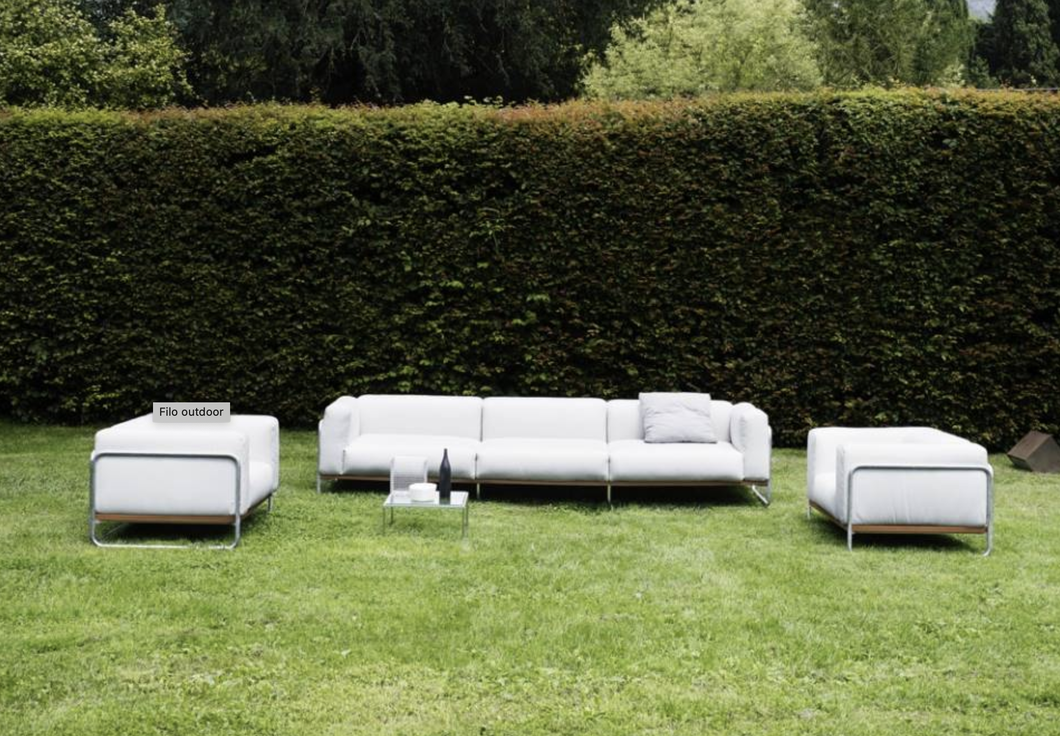 Pohovka a křeslo Filo Outdoor mají trubkový ocelový rám, který drží skořápku pohromadě. Sedací části jsou ze dřeva s potahem. Tuto soupravu na své zahradě prostě potřebujete.