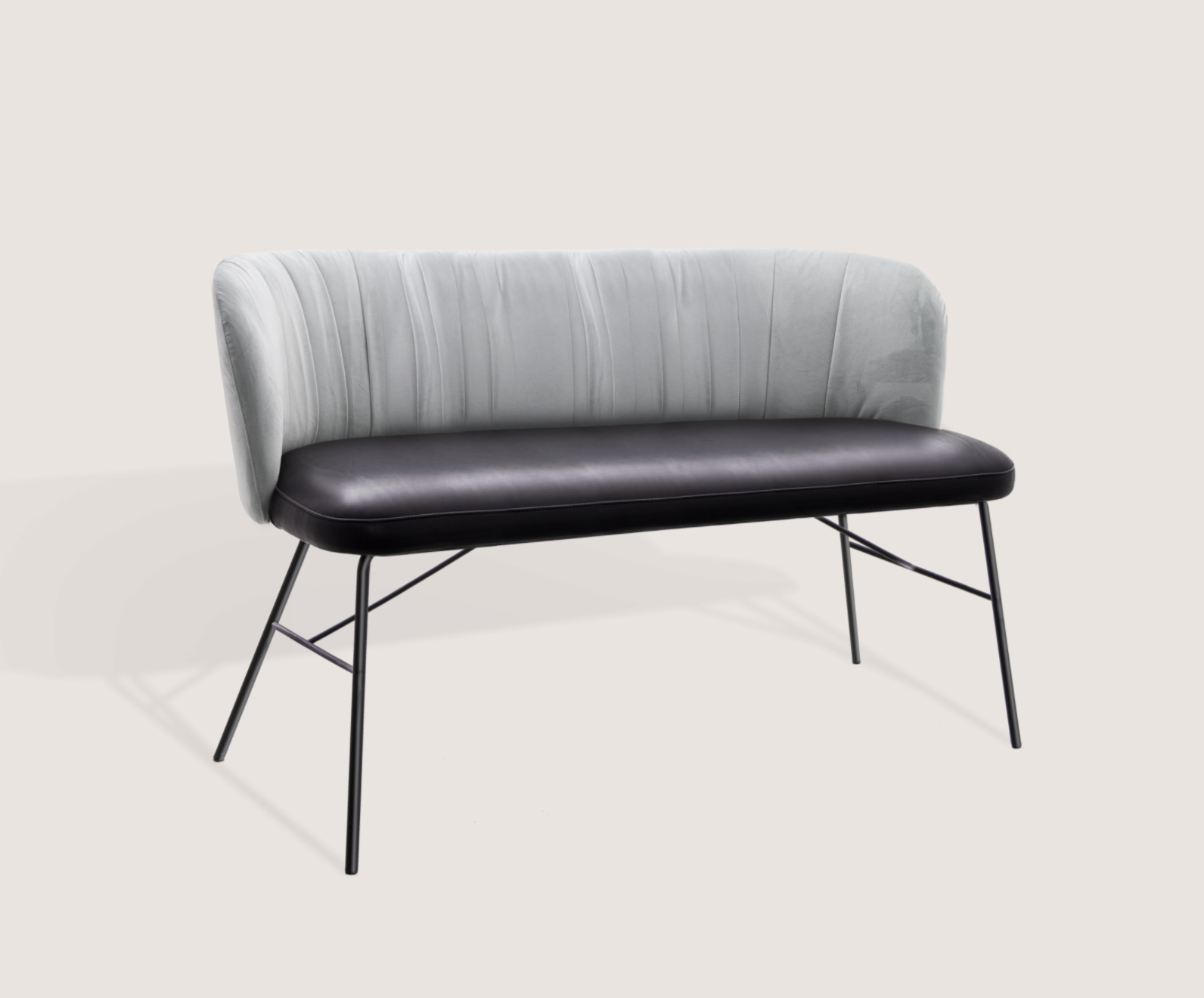 Čalouněná sedačka Gaia Casual s připoutaným a polstrovaným sedákem. Pohodlné opěradlo s pružnými, oddělenými čalouněnými zadními prvky z tvarovaného dřeva s pěnou. S plastovými nebo plstěnými kluzáky.