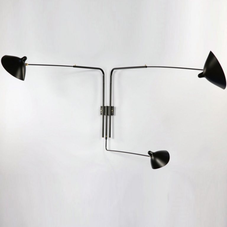 Tato tříramenná lampa může osvětlovat místnost pod různými úhly, a to díky nezávislému otáčení jednotlivých ramen a různých úhlů klopení stínidel. Spínače jsou umístěné na montážní desku.