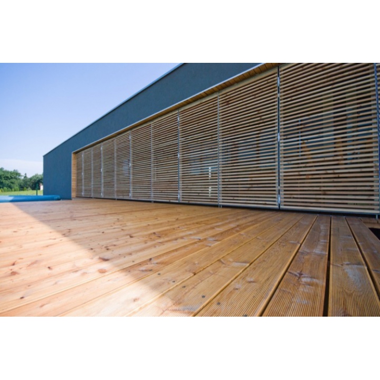 Sibiřský modřín zdobí jemná leta s velkým obsahem pryskyřice. Díky velkému procentu obsahu olejnatých látek se toto dřevo vyznačuje vysokou přírodní odolností vůči povětrnostním vlivům. K typickým prvkům patří živá struktura a velké suky, dále kroucení a sklon k tvorbě podélných trhlin. Tento druh modřínu má nažloutlou až červenohnědou barvu, po čase se na povrchu vyskytne šedostříbrná patina.