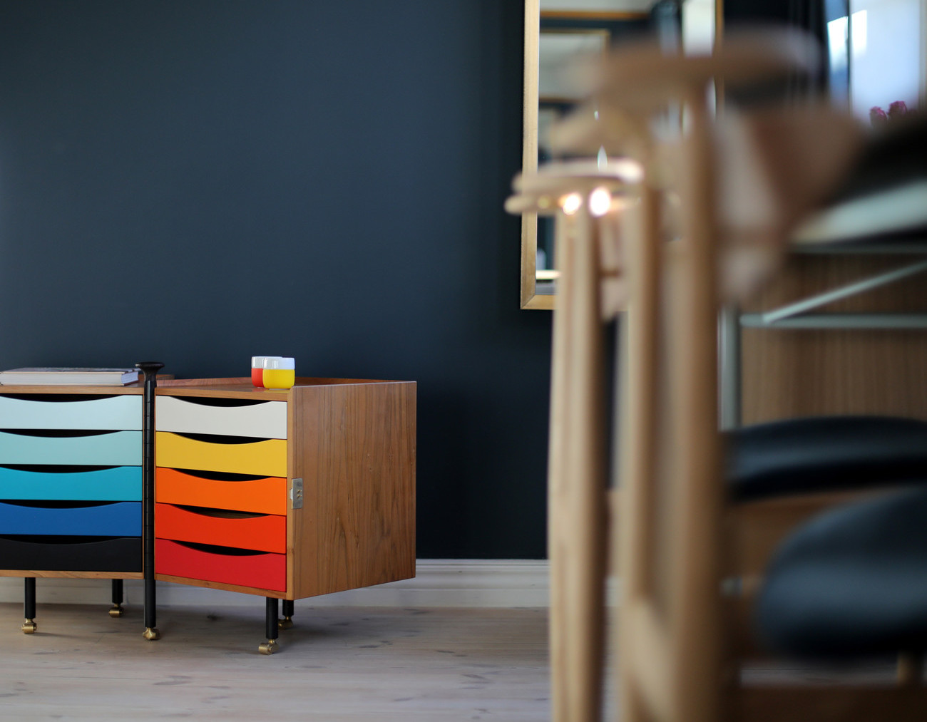 Komoda Glove s exkluzivním třešňovým a mosazným exteriérem v kombinaci s odvážným barevným interiérem se dnes jeví jako mimořádná pocta minulosti, současnosti i budoucnosti.