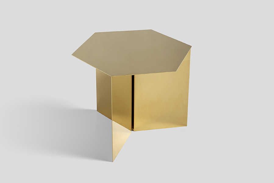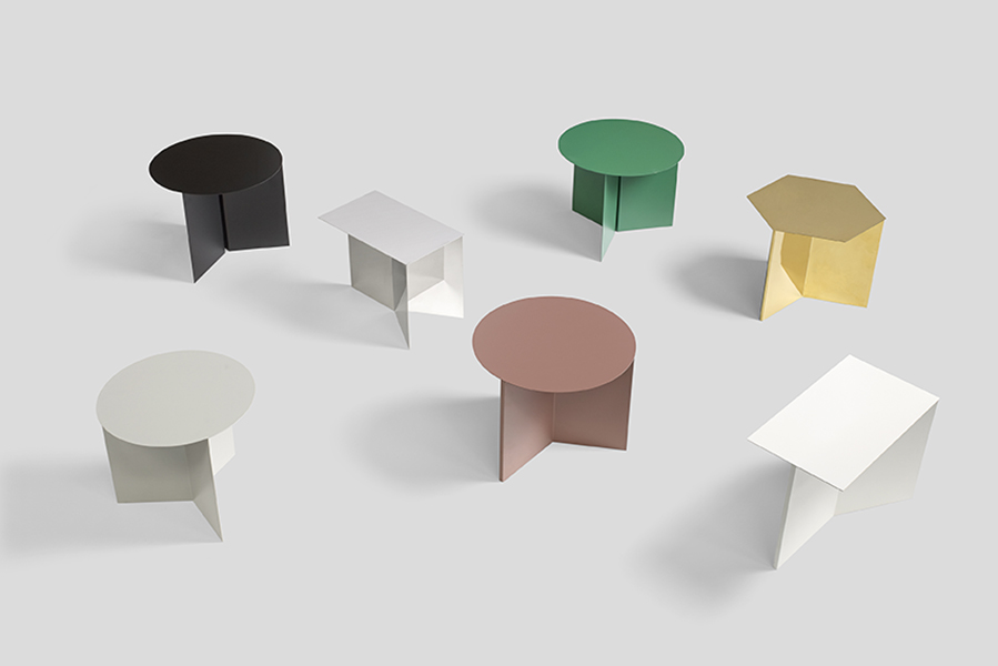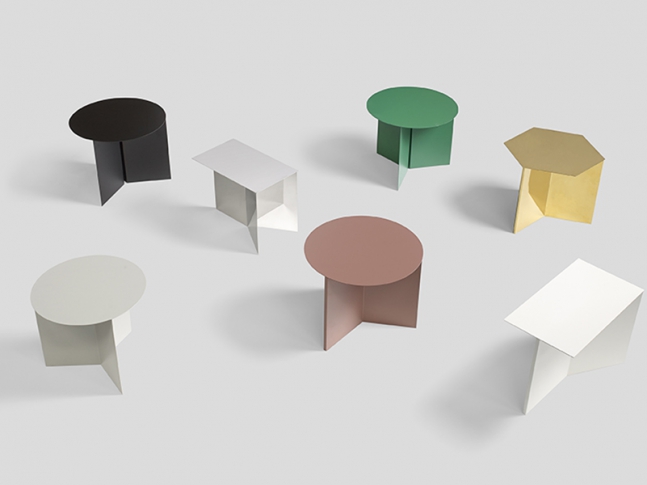 Slit od dánské firmy Hay je jednoduchý kovový odkládací stolek se třemi tvary: kulatý, obdélníkový a šestiúhelníkový. Stolek má připomínat origami přesměrované z papírového do kovového světa. Slit je k dispozici v pěti barvách, v mosazném a zrcadlovém lesku v celkem 14 různých kombinací. Použijte je ve dvojicích, shluku nebo jen samostatně.