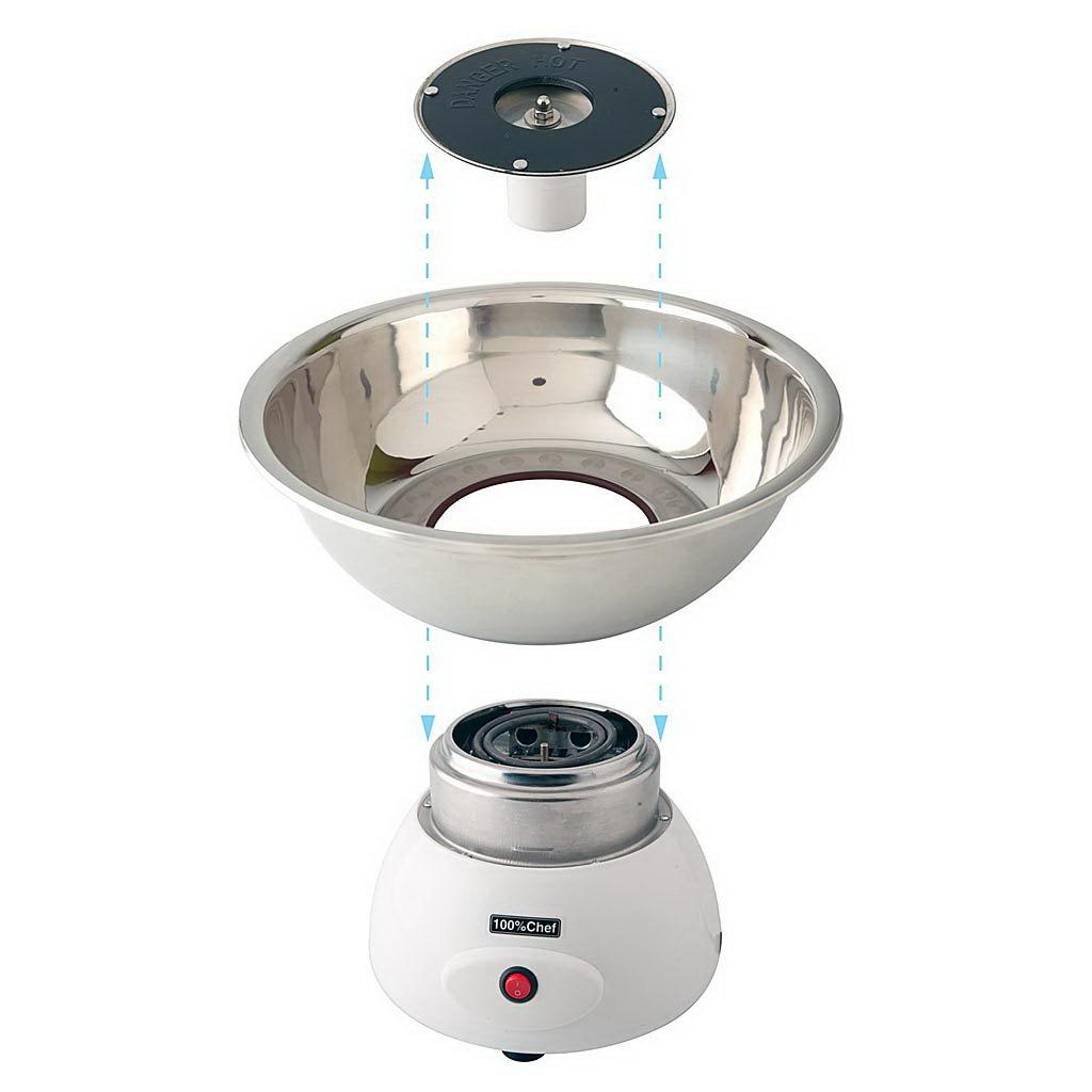 Snack Cotton Mini-Pro 600 připomíná velikostí spíše hračku, ale skrývá funkce, výkon a odolnost profesionálního stroje. Díky možné změně polohy bubnu funguje s různými druhy cukru (isomalt, běžný). Můžete vyrobit slanou vatu se všemi příchutěmi, které si umíte představit: sýr, rajčata, růže, okurka...a samozřejmě také sladkou cukrovou vatu různých barev a chutí.