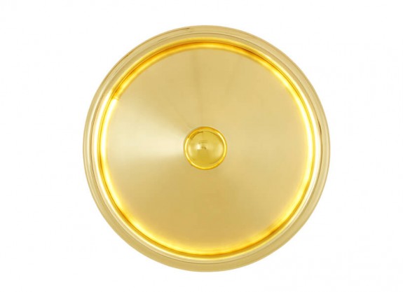 Překvapivě jednoduchý měděný disk se silným trubicovým krajem je základem tohoto minimalistického svítidla, Spun Wall je estetickým odkazem space age, Deco nebo Pop artu. Funguje jako reflektor pro zdroj světla.