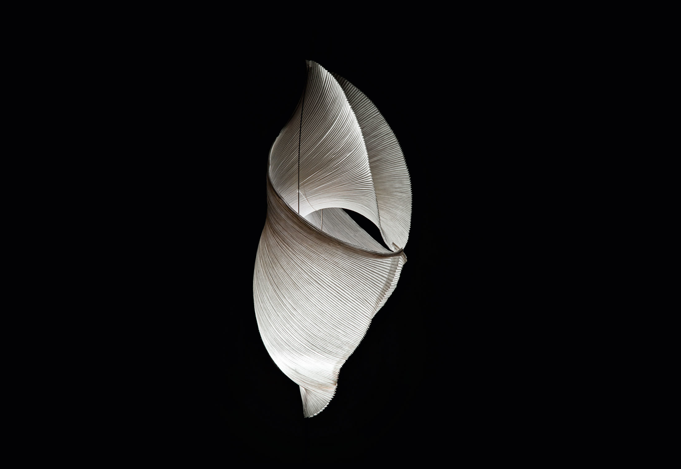 Papír, kov, nerez a silikon. Babadul je jak stojací lampou, tak i lehkým objektem, který pozitivně ovlivňuje prostory ve kterých je umístěný.