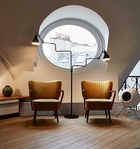 Stojací lampa N°411 Double francouzské značky DCW se vyrábí od dvacátých let minulého století. Původně sloužila k účelům v průmyslovém a kancelářském prostředí takových architektonických velikánů, jako byl např. Le Corbusier. Díky nadčasovému designu a funkčnosti se stala oblíbenou i v domácnostech po celém světě