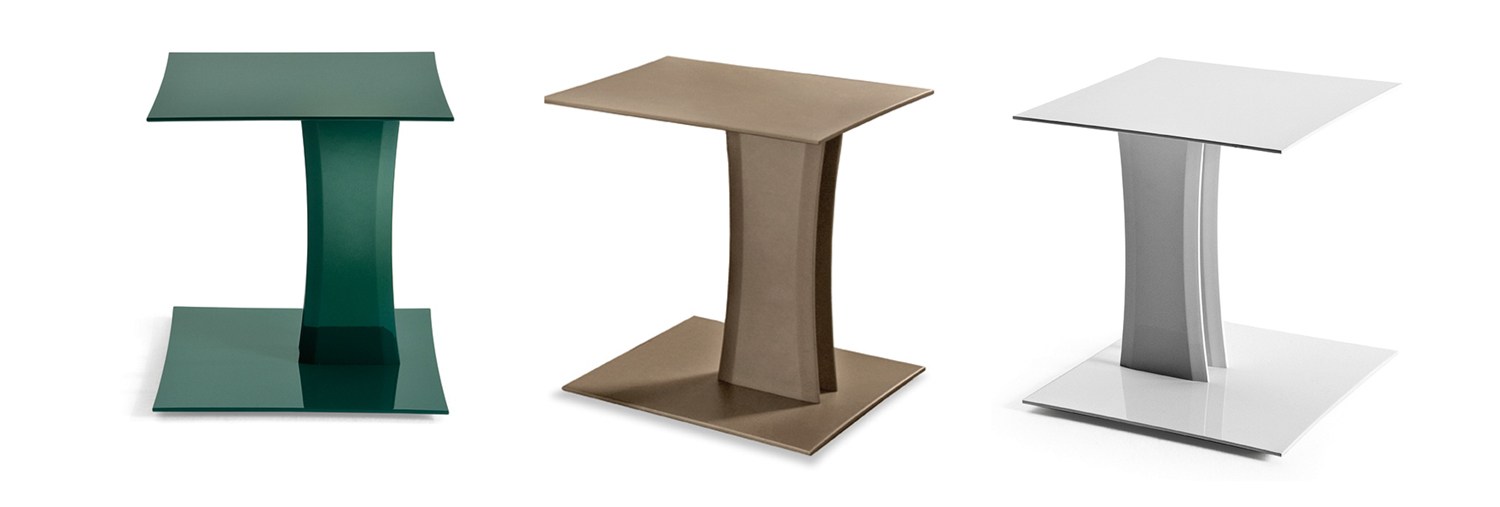 Malý a sofistikovaný, je vybaven dvěma, horními a dolními, malovanými policemi z MDF, kovovou základnou a dvojitým stojanem MDF. Matná povrchová úprava v následujících barvách: černá a bílá. Dodává se v libovolné barvě RAL na vyžádání.