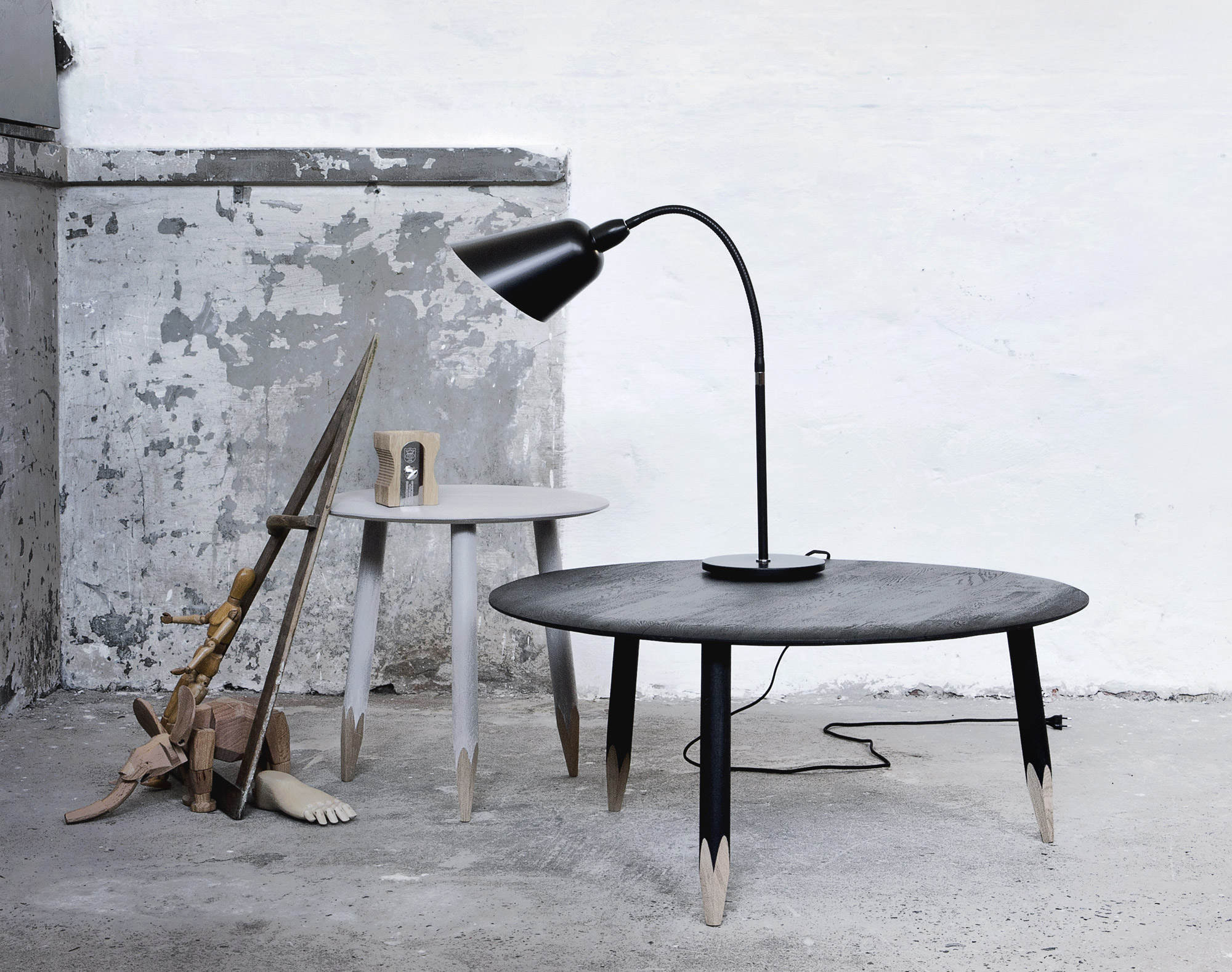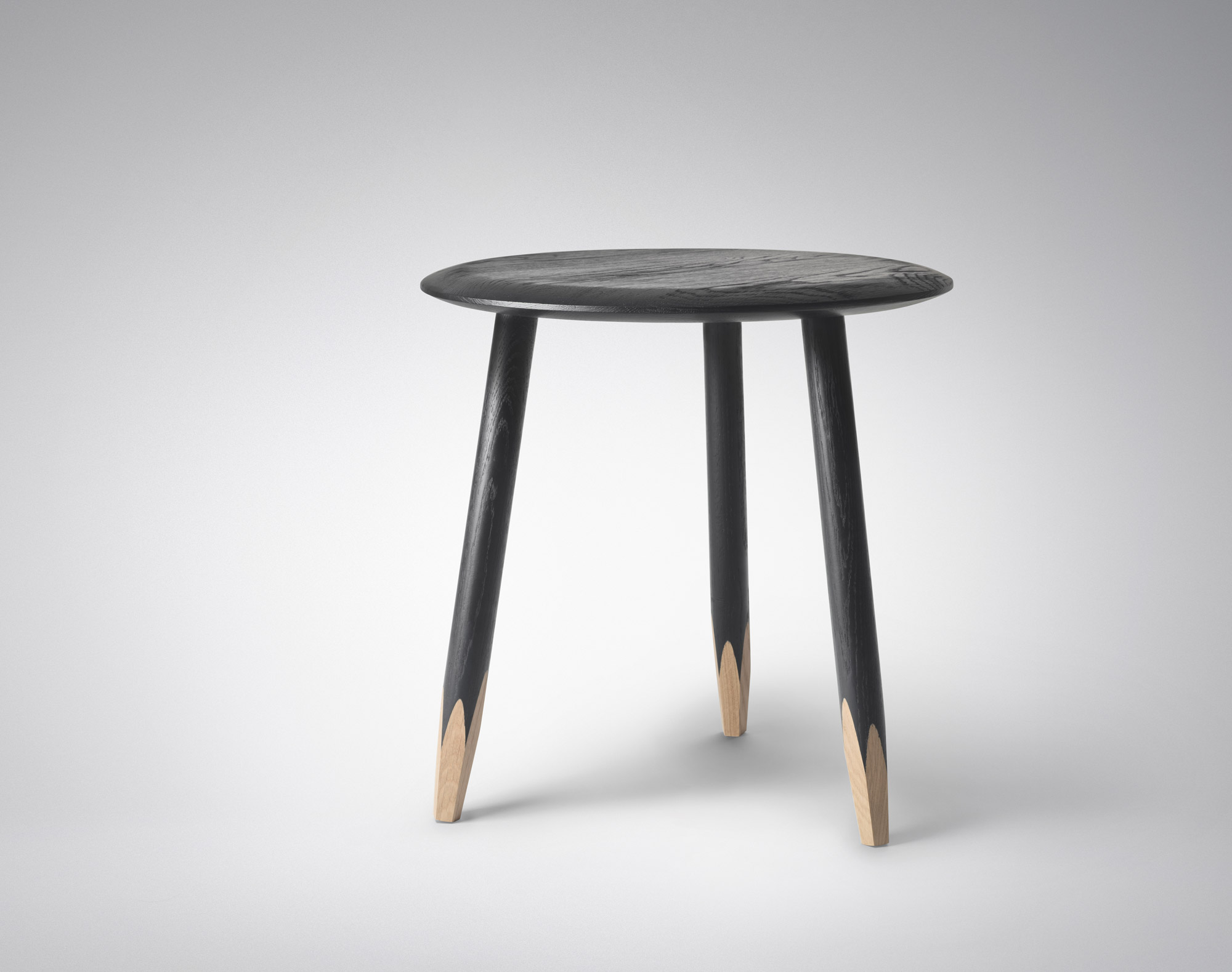 Konferenční / odkládací stolek Hoof Lounge Table SW1 od &tradition (AndTradition) s třemi módními šikmými nožkami navíc zaujme detailem v podobě jejich seříznutí. U černé varianty stolku Hoof je tento detail ještě zvýrazněn tím, že seříznutá část nožek je ponechána v přírodním dřevě.