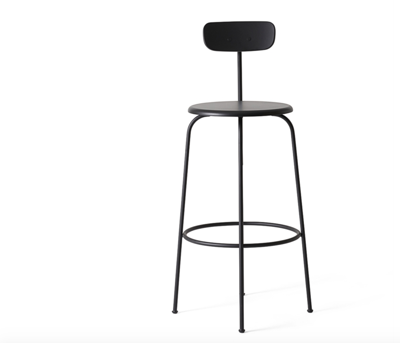 Afteroom stolička je vyrobena z černé práškové oceli a dodává se s čalouněným sedákem nebo bez něj. Stolička je k dispozici ve třech výškách - stolička, pultová stolička a barová stolička.