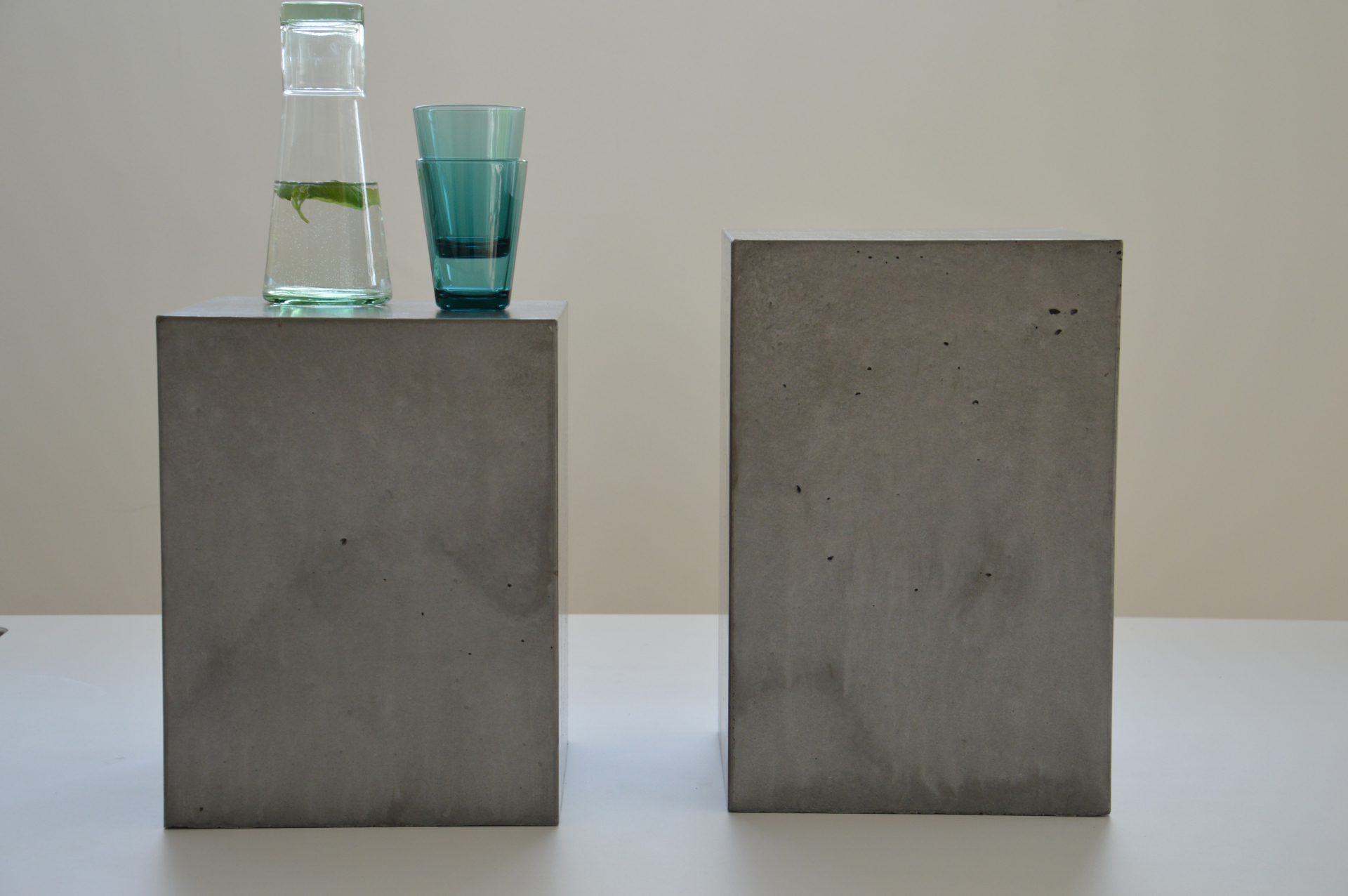 Betonové stoličky nebo odkládací stolky německého výrobce Jan Kurtz jsou vhodné i do exteriéru.