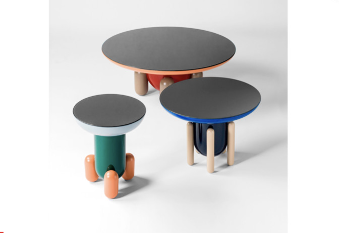Série stolů Explorer 1, 2 a 3 inspirovaných hravou hrou. Připomínají želé, kulaté sladkosti, které děti jedí v USA. Tato dětská inspirace má zároveň velmi elegantní krásu, která se obecně vyznačuje v návrzích Jaime Hayon.
