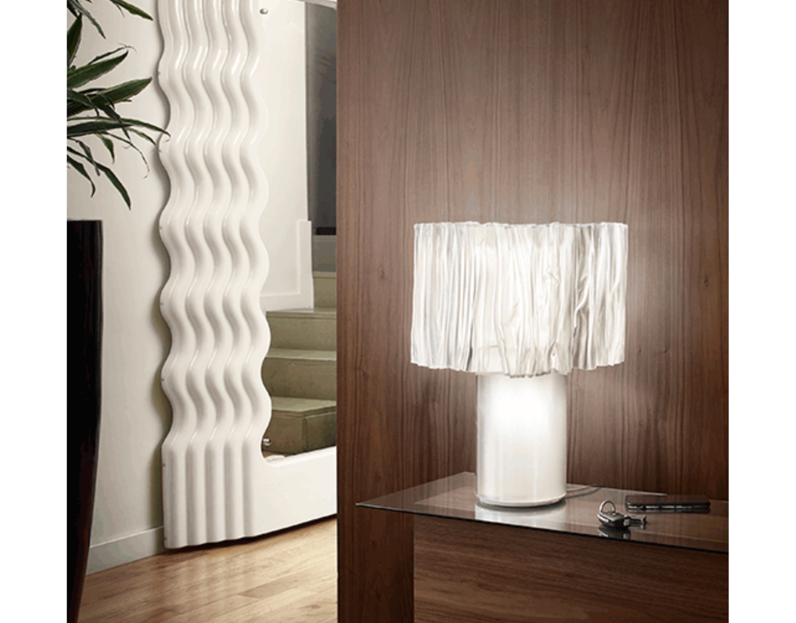 Stolní lampa Accordéon představuje nový příběh v moderním designu: exkluzivní materiál Lentiflex ® společnosti Slamp je ohříván a ručně formován. Každý kus je jedinečný, ale lampy jsou identické.