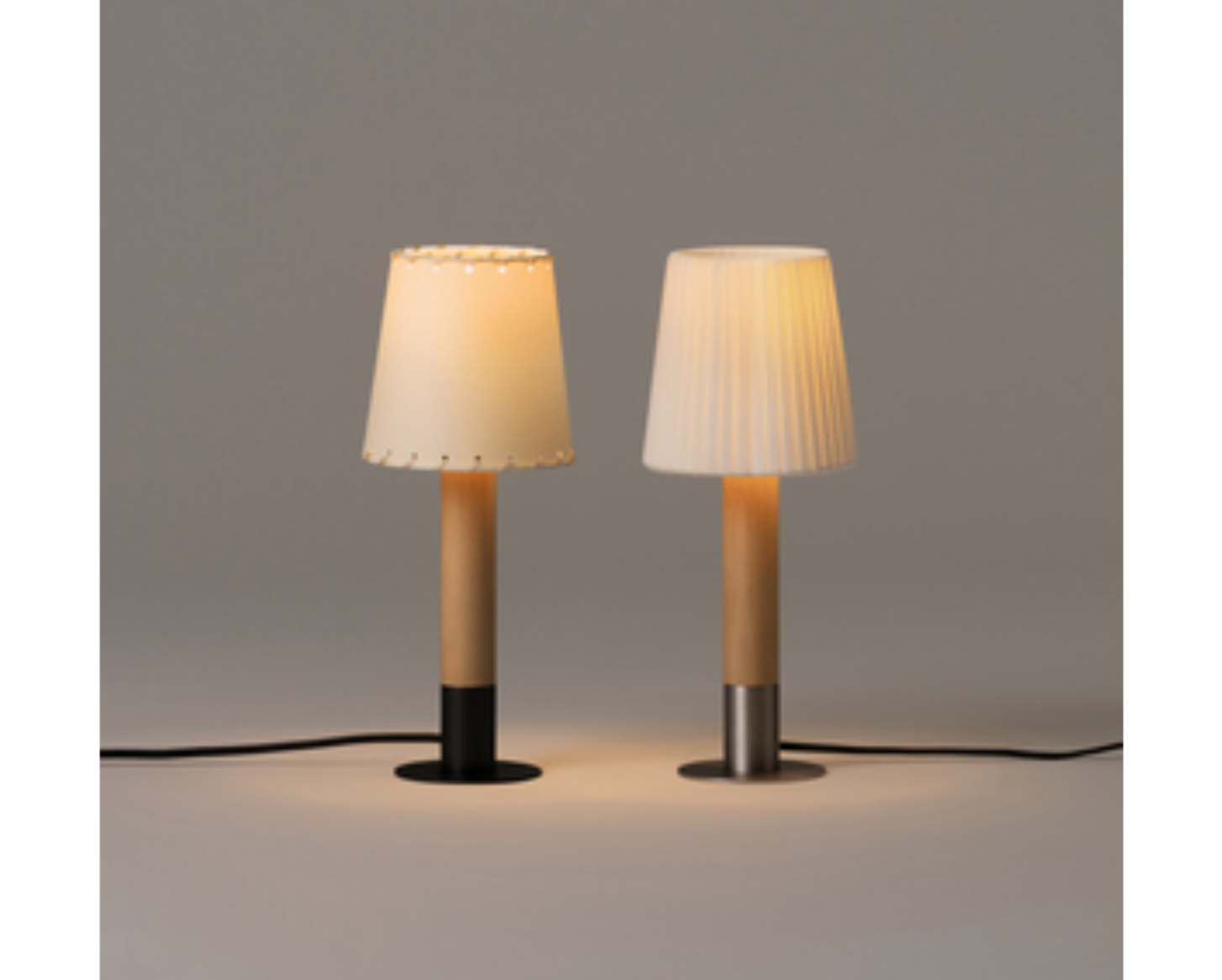 Lampa Básica Mínima kombinuje robustnost a lehkost. Stínidlo a povrchová úprava jsou k dispozici ve dvou jedinečných verzích. První bronzovou základnu a skládané stínítko z pergamenu. Druhá verze má niklovou povrchovou úpravu a stínicí lampu prošitou stužkou, opět na sloupu z březového dřeva.